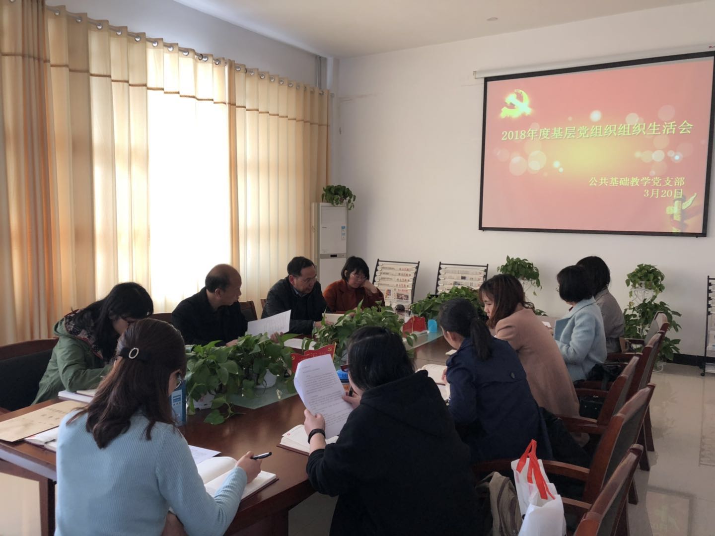 3月20日下午,公共基础教学部党支部在新校区召开了2018年度组织生活会。会议由基础教学党总支书记孙红伟主持。