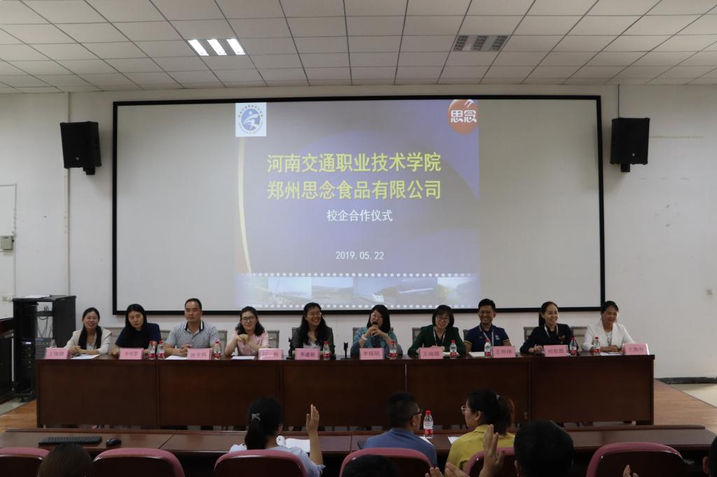 在校企合作签约仪式上,双方就学院的校外实训基地和郑州思念食品有限公司订单班相互授牌,会后组建了公司的第一个订单班,并对订单班学生作为公司管理人才梯队培养。