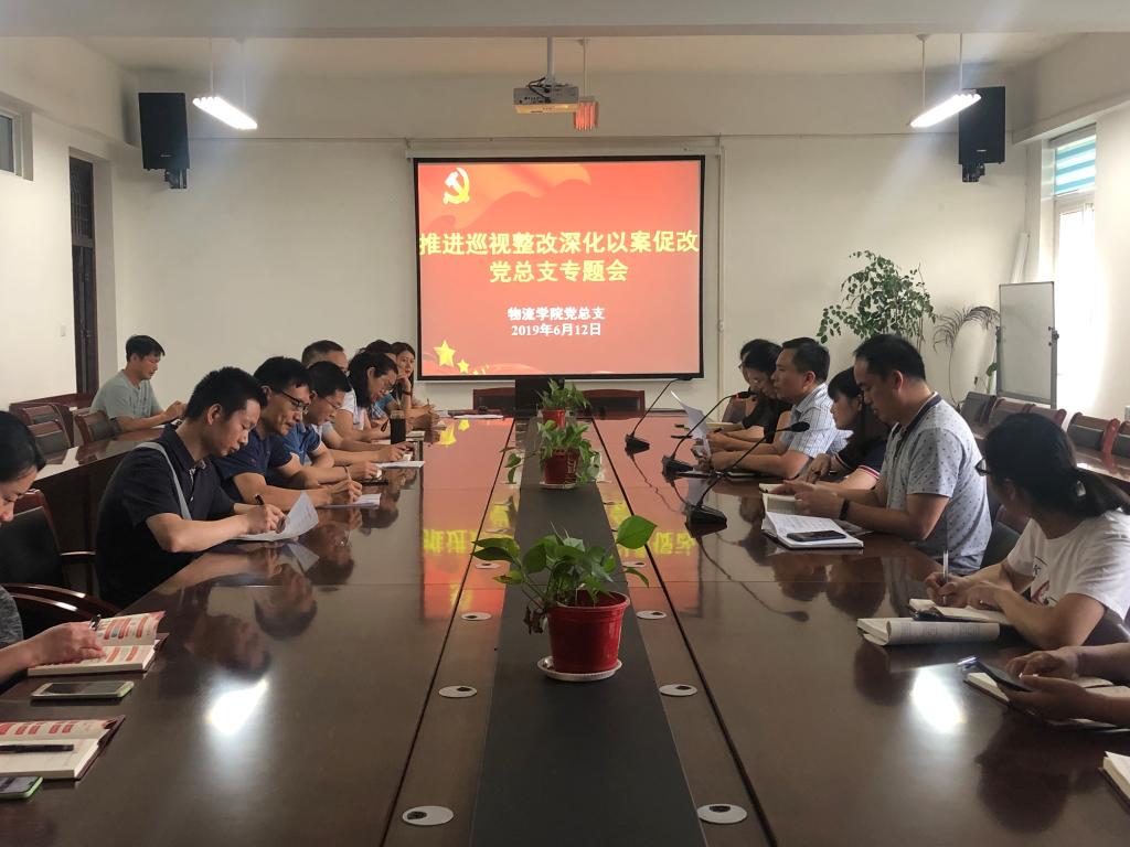 6月12日,物流学院党总支在新校区召开“推进巡视整改深化以案促改”专题会议,全体党员教师参加会议。会议由总支书记程晓栋主持,纪检监察室朱叶参加会议。