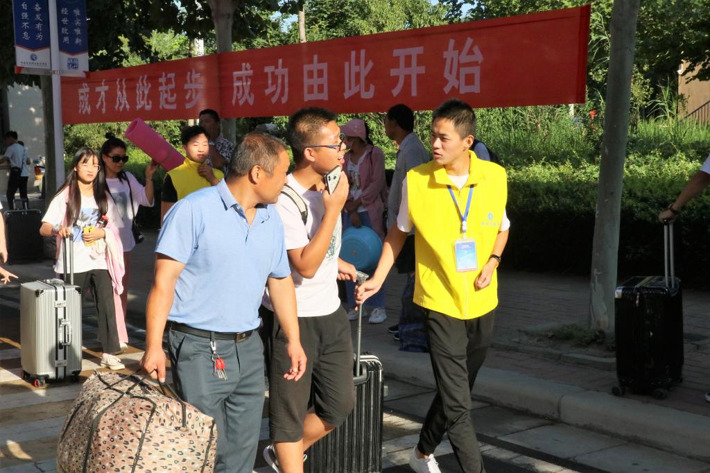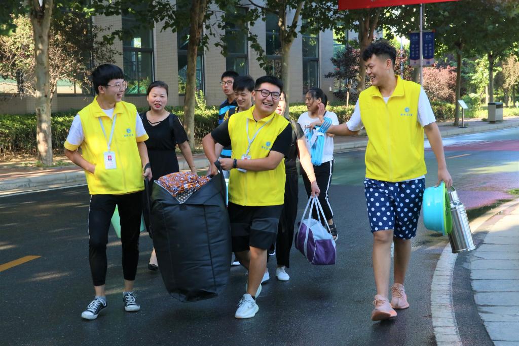 新生报到当天,身着黄色志愿者马甲的志愿者们踏着朝阳,奔赴咨询引导、广播宣传、地铁口接站等岗位,他们本着“热情大方,无私奉献”的宗旨积极投入工作,全心全意为同学和家长服务。