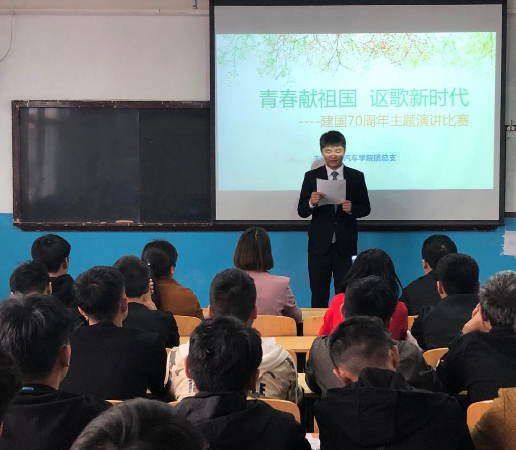 10月25日,汽车学院团总支在航海路校区举办“青春献祖国,讴歌新时代”中华人民共和国成立70周年主题演讲比赛。来自不同专业的22名学生参加了比赛,通过演讲的方式向新中国成立七十周年献礼。