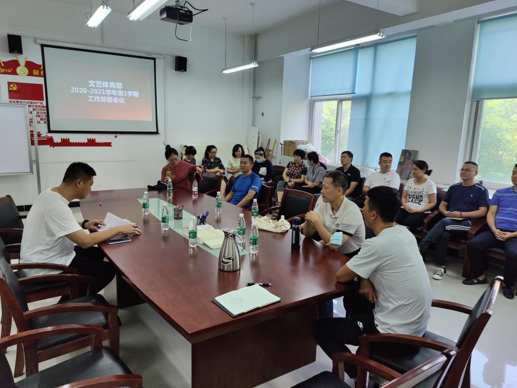 9月8日下午,文艺体育部在东校区3A308会议室召开了新学期开学收心会,全体教职工参加会议。文艺体育部主任张焕主持会议。