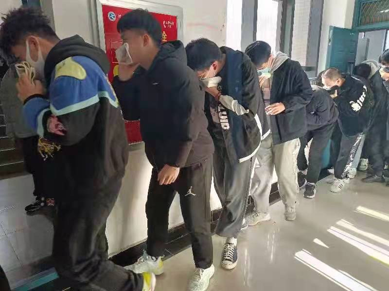 为保证演练效果和疏散安全,辅导员万锦祥老师对学生进行了演练前的安全教育,重点强调了疏散路线、注意事项、集合地点。