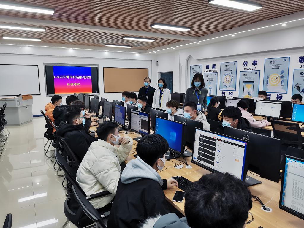 为贯彻落实教育部《国家职业教育改革实施方案》,稳步推进“1+X”职业技能等级证书试点工作。12月04日,交通信息工程系举办“1+X” 云计算平台运维与开发等级证书考试。来自计算机应用技术和计算机网络技术专业20名学生参加考核,交通信息工程系主任田保慧到考场巡查。