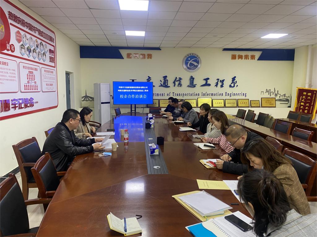 为深化校企协同育人,推动人才培养、学生就业等工作,3月16日下午,交通信息工程系与河南中天高新智能科技股份有限公司进行校企合作洽谈。河南中天高科人力资源部部长吕静、维护工程部部长蔡鸣、交通信息工程系相关负责人参加会议。会议由交通信息工程系主任田保慧主持。