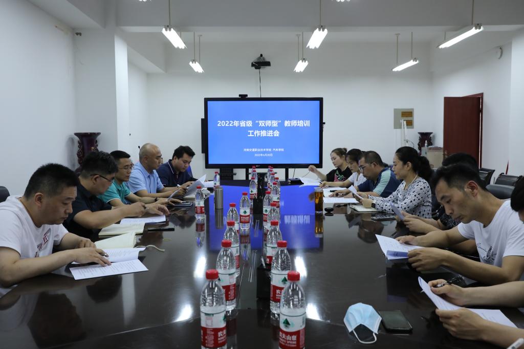 6月20日下午,汽车学院在航海路校区图书馆603会议室召开2022年省级“双师型”教师培训工作推进会,汽车学院党总支书记轩照振主持会议,郑州鑫诺商贸有限公司总经理唐阳忠一行4人,汽车学院班子成员及相关负责人参加会议。