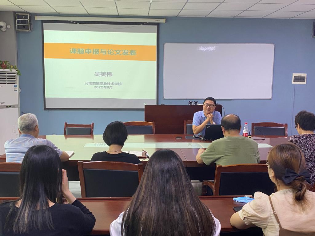 培训中,吴笑伟教授作题为《课题申报与论文发表》的精彩培训。在课题申报上,他从影响选题申报成功的10大因素、选题要“准、新、特”、课题论证要把握的4大要点、选配研究团队成员的技巧等方面进行详细讲解;同时,他结合自身经历向大家讲解了评价高水平科技论文的4项标准、论文写作的10项技巧、论文写作容易出现的问题及4种解决方法,循序渐进地启迪大家结合个人兴趣和学科专业选对研究方向,把科研工作与个人成长、专业建设和学校发展结合起来,优化现有资源,加强交流合作,提升科研能力。