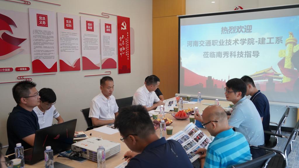 为深入了解智能建造市场发展现状,进一步拓展学生就业渠道。8月11日上午,建筑工程系主任王永、实训中心负责人颜朋辉、骨干教师王智博一行3人赴郑州东区智慧岛大厦河南南秀建筑科技有限公司进行走访交流。