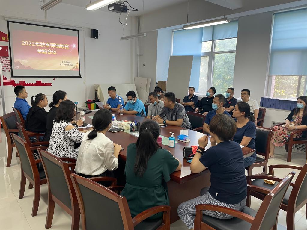 9月28日下午,文艺体育部在郑东校区会议室召开2022年秋季师德教育专题会议,全体教职工参加会议。会议由文艺体育部主任张焕主持。