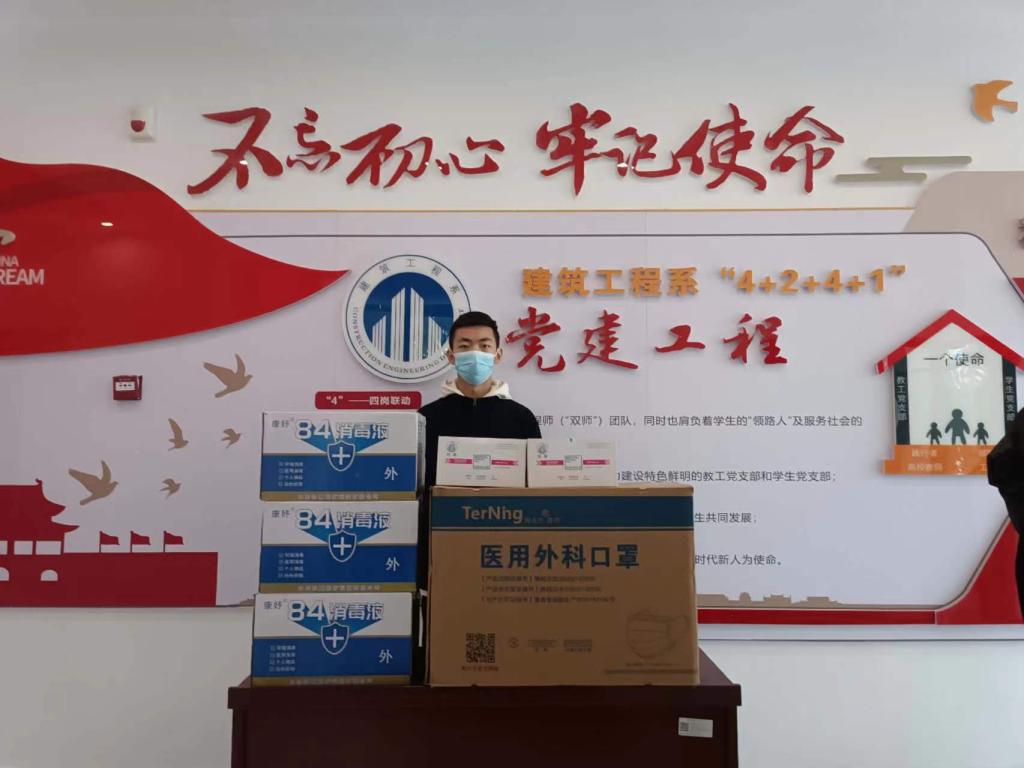 自郑州本轮疫情发生以来,我校积极落实疫情防控政策,守护校园安全。一大批有责任、有担当的师生自觉冲上疫情防控一线,汇聚了众志成城、携手抗击疫情的磅礴力量与正能量。近日,建筑工程系建设工程管理专业21303班学生刘胜朝向学校捐赠了4000个口罩、300瓶消毒液等一批防疫物资,助力学校筑牢校园防疫阵线,彰显了我系学生勇于担当、懂得感恩的家国情怀。