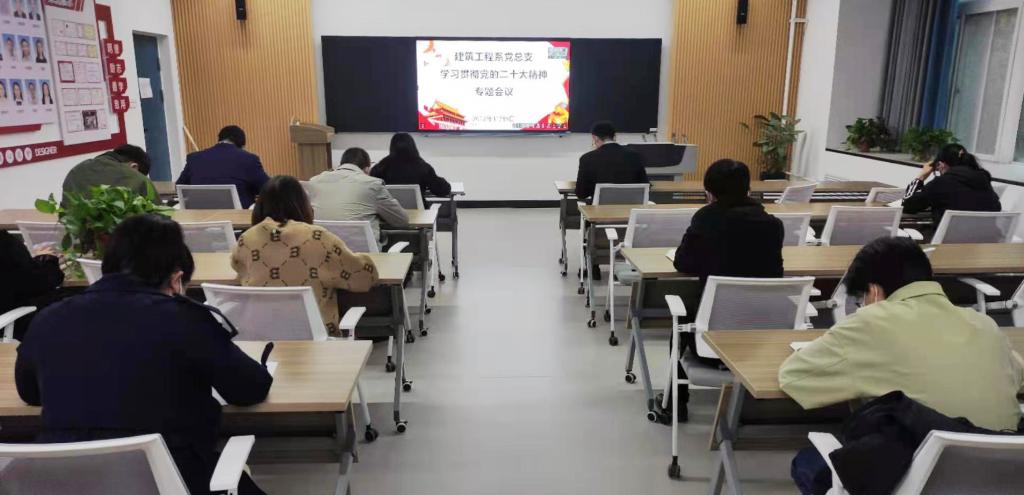 11月9日下午,建筑工程系组织全体教工党员召开学习贯彻党的二十大精神专题会议,会议采用线上线下结合的形式进行,会议由建筑工程系党总支书记谭萍主持。