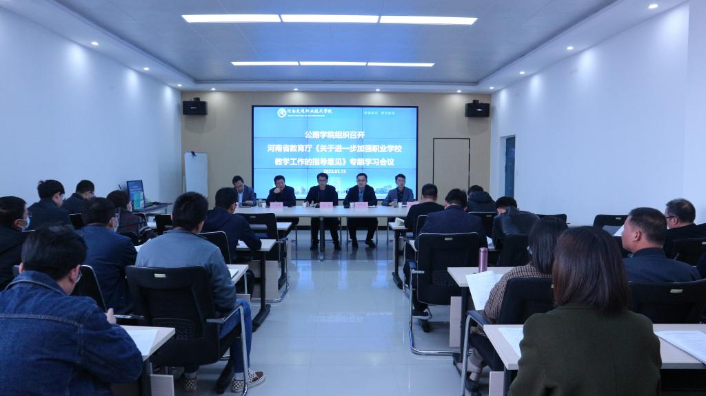 3月16日下午,公路学院在1C302会议室召开全体教工大会,专题学习河南省教育厅《关于进一步加强职业学校教学工作的指导意见》,会议由公路学院院长王永主持。