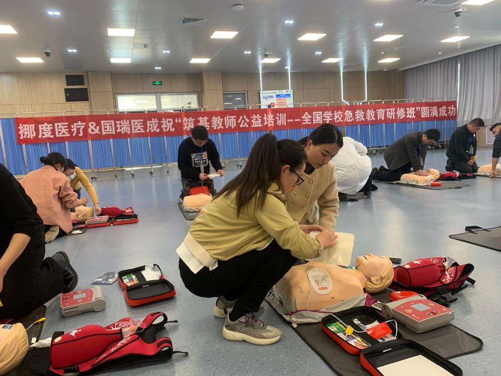3月21日,教育部在山东第一医科大学举办“筑基教师公益培训 — 全国学校急救教育研修班”,我校作为教育部首批 201 所全国学校急救教育试点学校,4名校医院老师参加现场授牌仪式及线下急救教育培训,校医院其他人员参加线上培训。