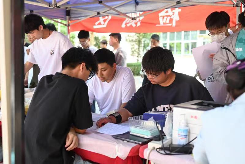 近日,校团委联合河南省红十字血液中心,在郑东校区扬帆广场开展无偿献血活动。