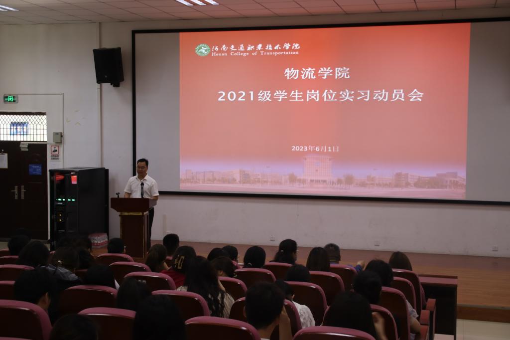 6月1日,物流学院在学术报告厅组织召开了2021级岗位实习动员大会。物流学院班子成员、实习指导教师及现代物流管理专业群学生参加会议。会议由物流学院党总支书记李云川主持。