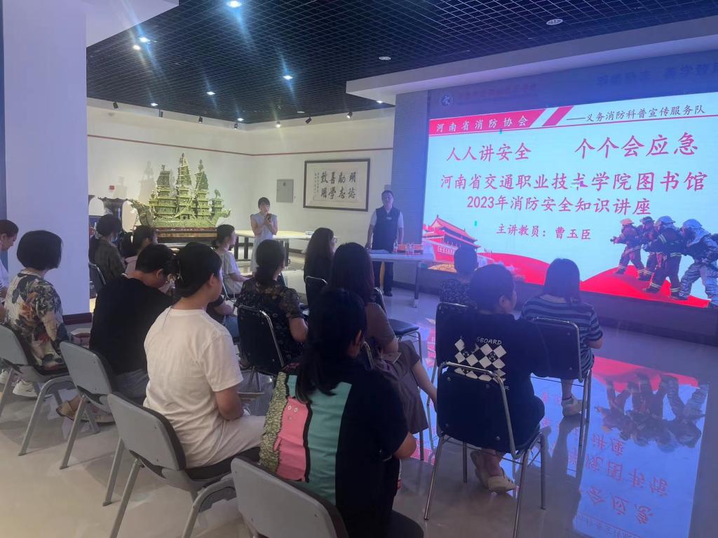 今年6月是第22个全国“安全生产月”,为贯彻落实习近平总书记关于安全生产系列重要论述精神,维护校园安全稳定,近日,学校图书馆在郑东新校区图书馆二楼组织开展2023年“人人讲安全 个个会应急”消防安全知识专题培训及现场应急演练。活动邀请了省消防协会义务消防科普宣传服务队曹玉臣教员主讲,图书馆全体馆员参加培训。
