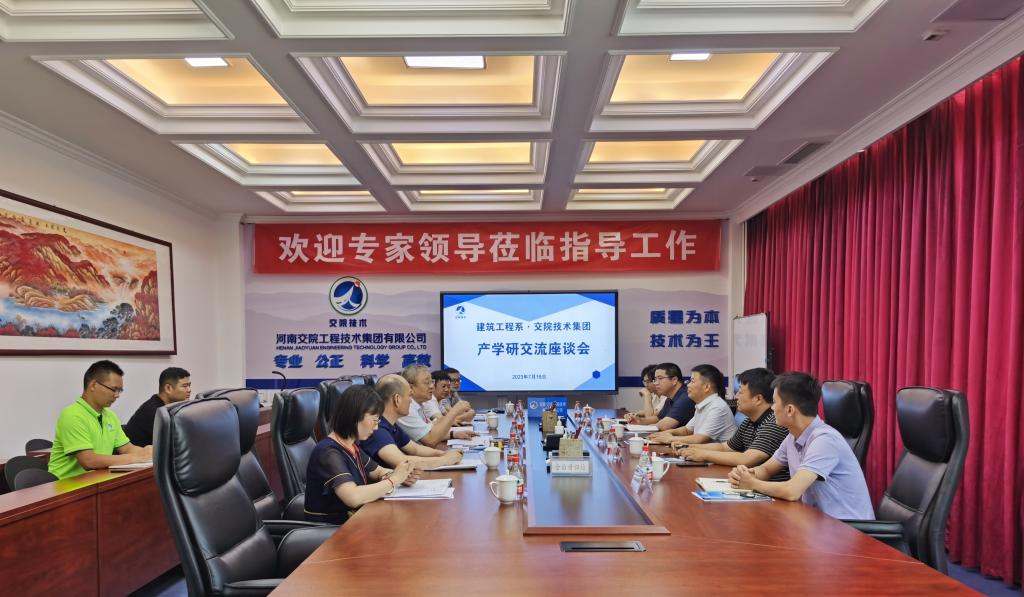 7月18日下午,建筑工程系主任刘向杰一行5人到交院工程技术集团进行产学研合作交流;交院集团党总支书记邵景干、副总经理张鹏参加调研。