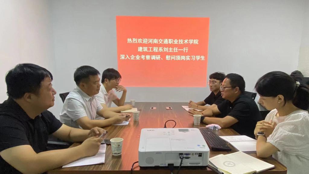 为落实人才培养方案,加强学生实习管理,提高人才培养质量。8月21日,建筑工程系主任刘向杰一行3人到河南建科软件技术有限公司看望实习学生,并与企业负责人、实习学生座谈交流。