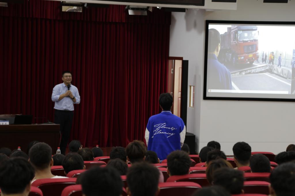 付雷锋,97届校友,中铁十五局集团检测公司董事长,曾任京沪高铁无砟轨道板场总工程师,潜心攻关无砟轨道技术终获成功,标志着中国完全掌握了世界最先进的无砟轨道板制造技术,并形成了自主知识产权。本次讲座中,他为大家带来了题为“新形势下大学生职业发展探讨”的报告,围绕个人二十余年的亲身经历,从个人成长、学校生活、基层历练到企业改革讲述奋斗历程,阐述人生感悟及未来规划。他勉励同学们要立足现状,谋划未来,幸福是奋斗出来的,一定要有理想有信念能坚持,善作善成,久久为功。