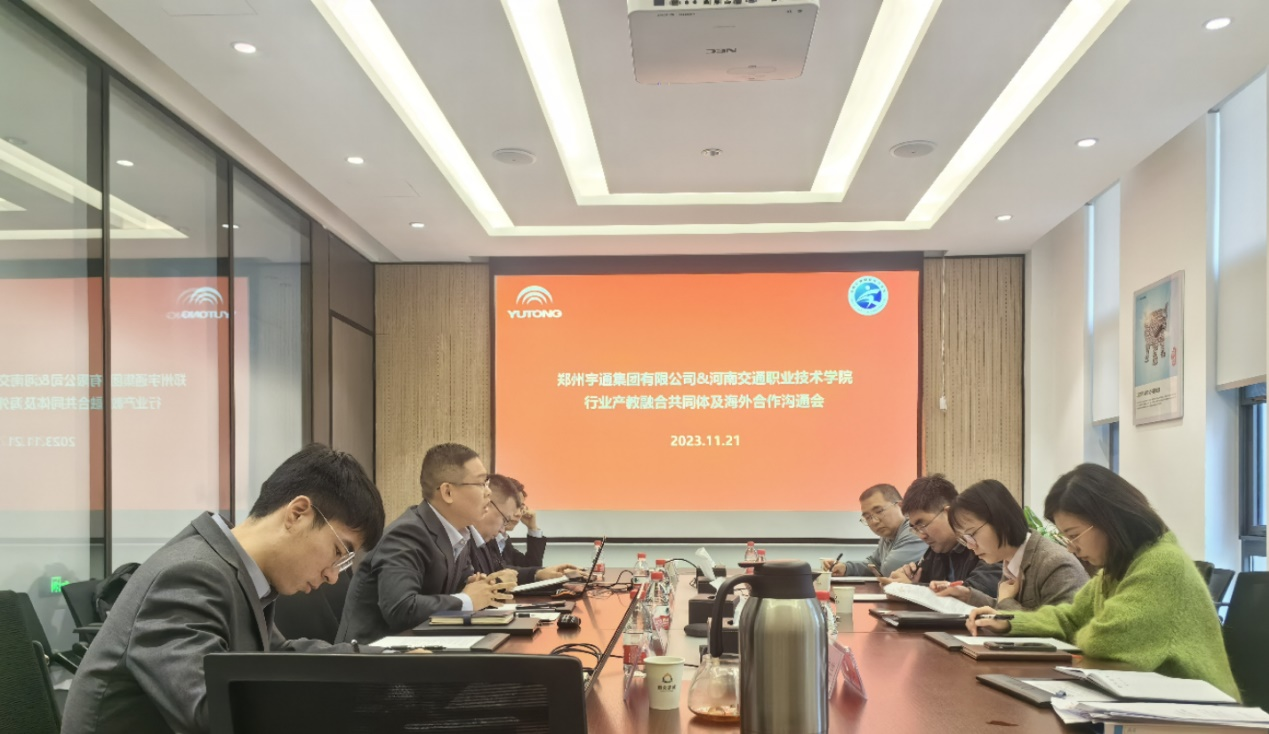 11月21日下午,汽车学院党总支书记轩照振、科研外事处副处长陈丽博赴郑州宇通研发中心洽谈海外合作工作。宇通集团校企合作部部长张晓峰、教育公司教学产品部部长李云浩参加座谈。