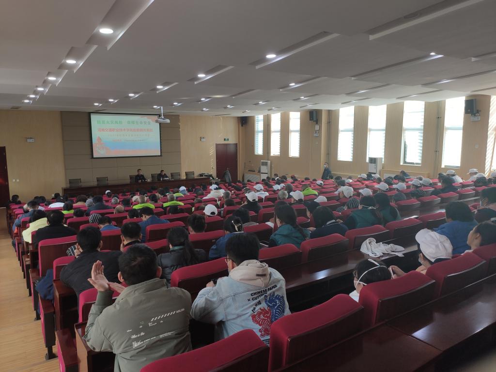 交通信息工程系:11月22日下午,交通信息工程系组织师生开展消防安全月活动。首先师生在二楼会议室开展消防安全知识学习活动,学习了《中华人民共和国消防法》和《河南省消防条例》,随后系部党总支书记王世晟和主任田保慧带领安全工作小组,积极开展消防安全隐患排查工作。最后,由河南省应急救援协会安全专业委会李珂教员为师生进行专题消防知识安全培训,并组织消防演练。