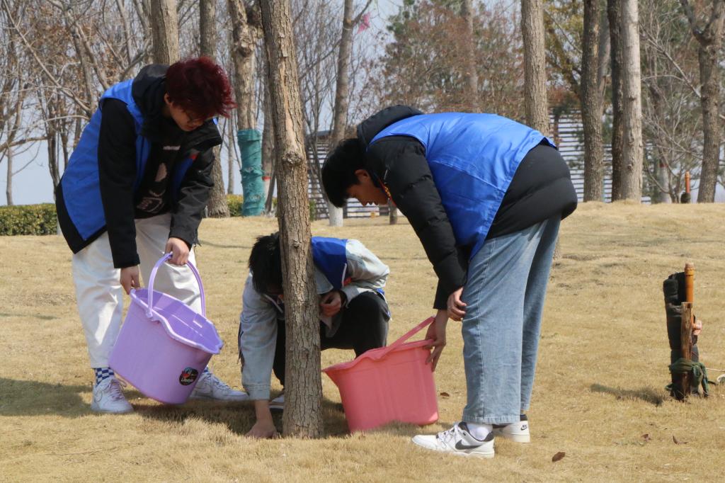 在全国第46个植树节来临之际,3月12日上午,轨道交通学院师生来到象湖湿地公园开展主题为“春回大地,护绿同行”的实践活动。