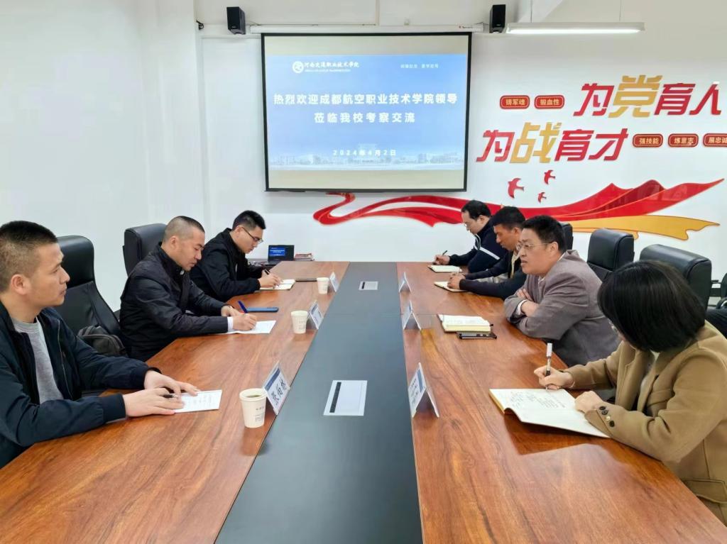 4月2日,成都航空职业技术学院军士管理学院院长梁潘一行3人到士官学院考察交流。士官学院院长沈宏杰参加交流会。