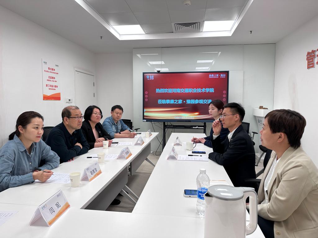期间,豫园社区人力资源总监王中升详细介绍了泰康之家的商业业态、岗位设置及人力资源需求等方面的情况,表达了为我校学生提供实习就业岗位的意愿。双方围绕员工能力标准、职业发展路径等方面展开了全面深入的交流,对学生专业技能、职业素养等维度的人才培养要求进行了探讨,为后续专业建设和更深入的校企合作提供了基础。