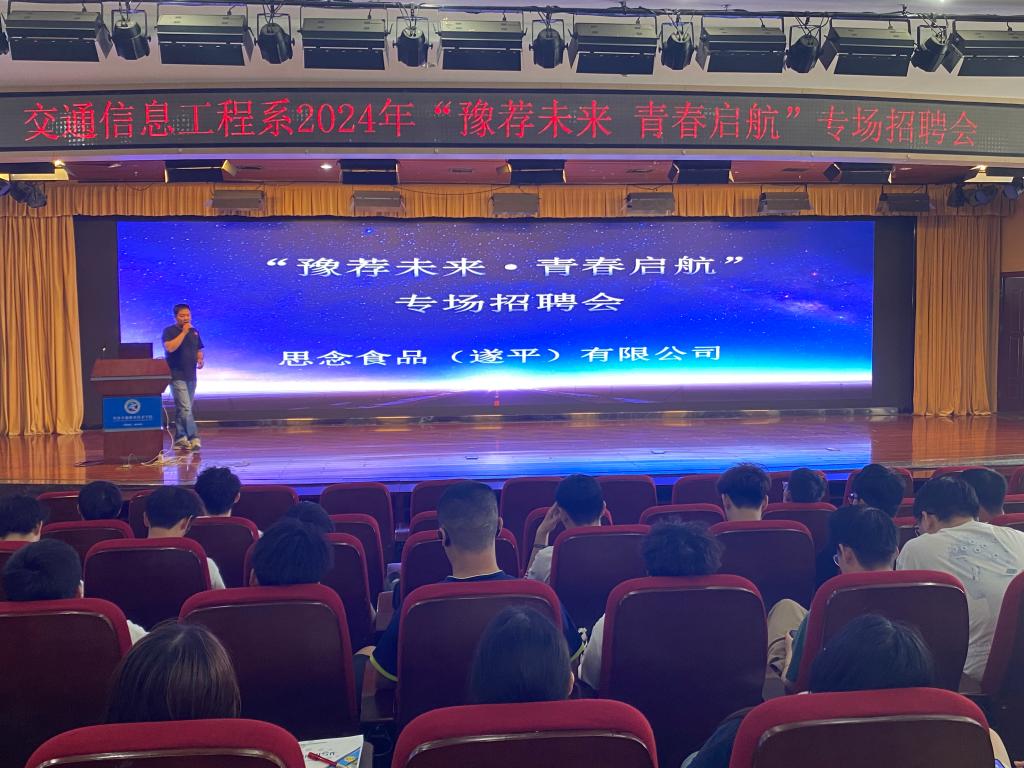 4月17日下午,交通信息工程系在图书馆报告厅举办思念食品(遂平)有限公司专场招聘会,招聘会采用线下和线上同步进行的模式,为学生提供了更加便捷、多样的参与方式。交通信息工程系21级和22级计算机网络技术、计算机应用技术、智能交通技术和电子信息工程技术专业学生参加招聘会。