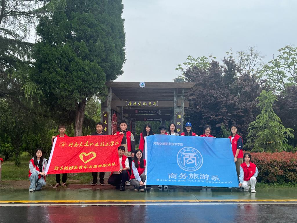 商务旅游系实践团队满怀喜悦,热情高涨,衣着红马甲,手持扫帚、夹子、垃圾袋等工具,对黄河花园口各个景点、公共地带的卫生死角和绿化带等区域进行清理。同时,实践团队成员认真学习普法长廊展示的“依法治国、依法行政、依法治河”等相关法律知识。