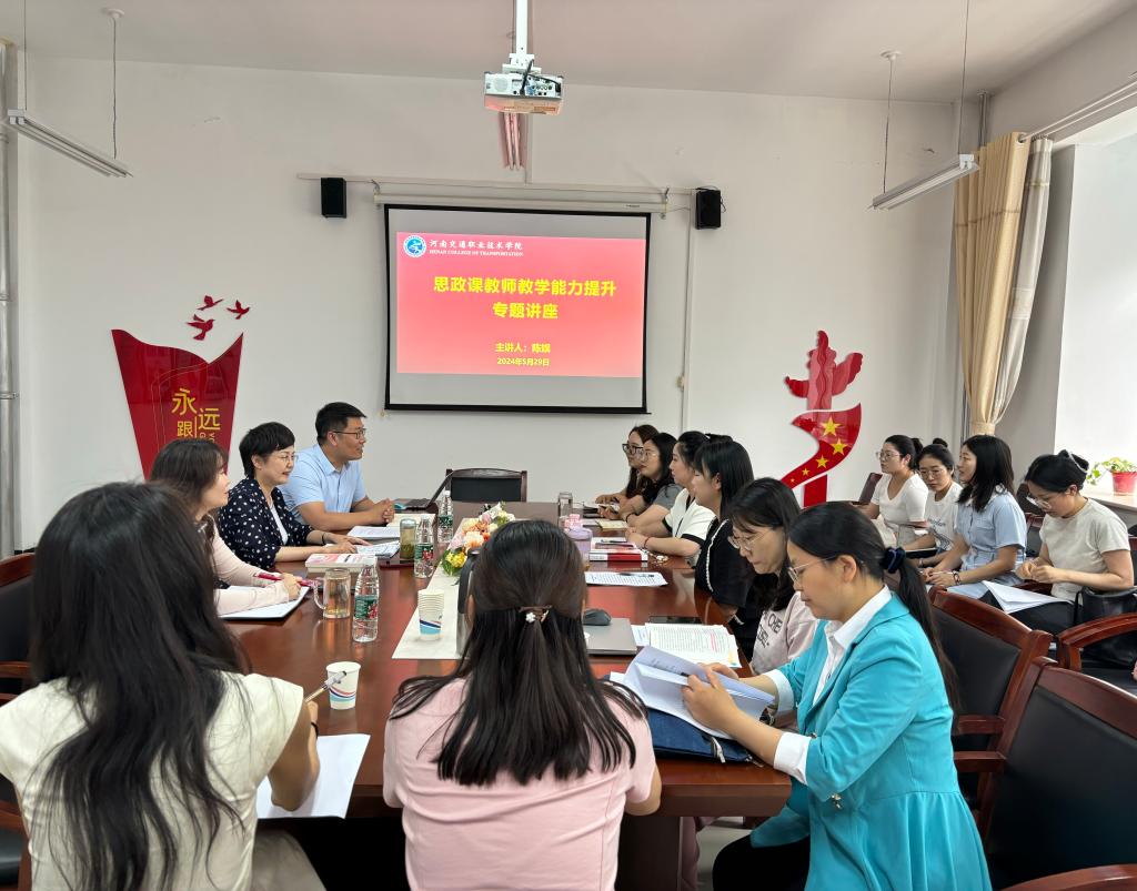 5月29日下午,马克思主义学院在学院会议室举办思政课教师教学能力提升专题讲座。本次讲座邀请河南农业大学陈娱教授主讲,马克思主义学院全体教师聆听讲座。