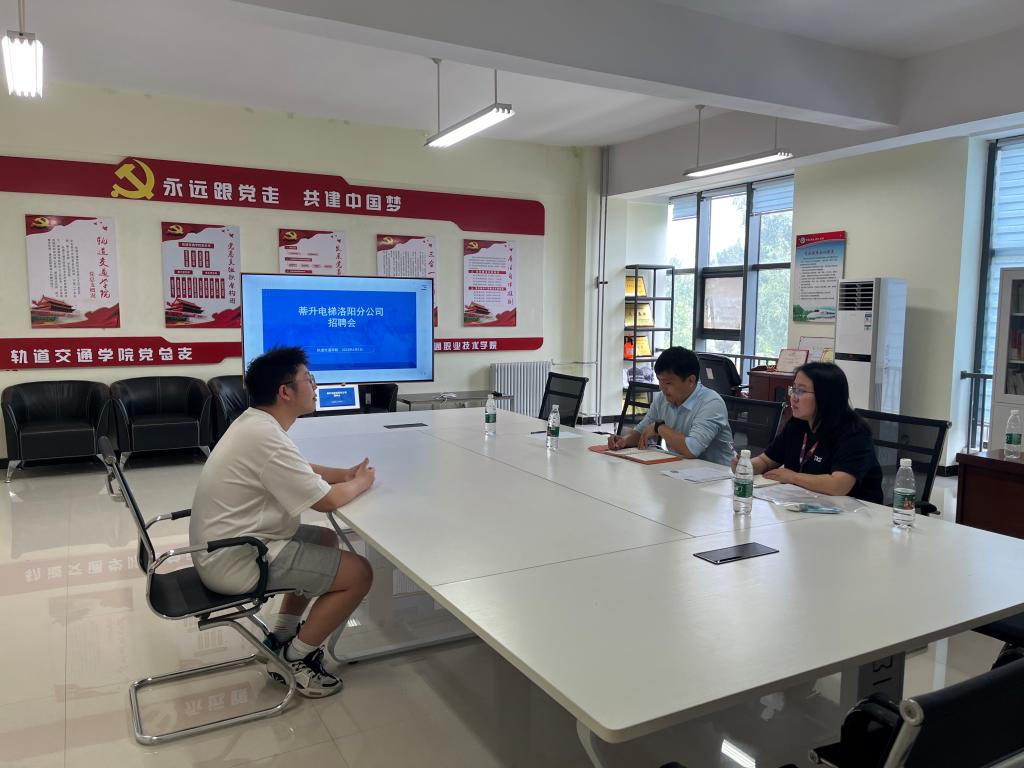 6月5日下午,轨道交通学院在物流学院报告厅举办“蒂升电梯专场招聘宣讲会”。会后,蒂升电梯(中国)有限公司河南区域旗下三家分公司举行现场面试,经过宣讲、简历筛选,共计80名学生参加面试。