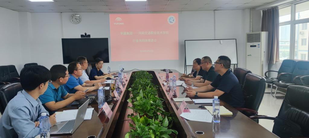 6月4日下午,汽车学院副院长杨长征一行4人赴宇通集团有限公司访企拓岗,并参加新能源智能网联客车行业产教融合共同体工作推进会。宇通集团教育公司总经理韩德利主持会议,共同探讨和规划未来校企双方在新能源智能网联客车领域深度合作事项。