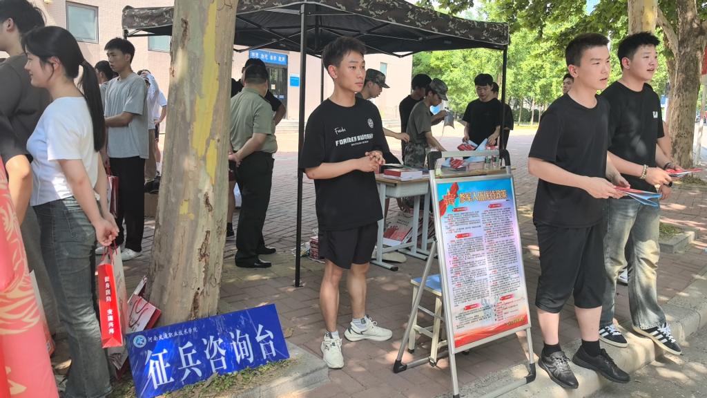 在宣传现场,武装部设立的征兵咨询台成为一道亮丽的风景线。参与此次征兵宣传的不仅有武装部的工作人员,还有来自学校军事类社团“豫虎强军社团”的学生志愿者,他们不惧高温,坚守岗位,耐心地向前来咨询的学生们介绍征兵政策、待遇以及军营生活等方面的情况,通过悬挂横幅、发放宣传册、现场讲解等方式,向同学们普及征兵知识,鼓励有志青年积极投身国防事业。
