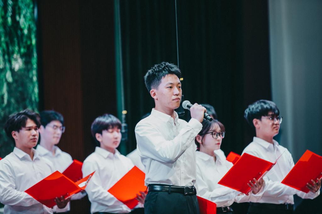 晚会以一首动感的歌曲《灰色轨迹》拉开序幕,迅速点燃了现场气氛。随后,歌曲联唱、舞蹈、戏曲、心理剧和武术等各种艺术形式的表演接连上演,展现了同学们的多才多艺和青春活力。话剧《觉醒年代》通过精湛的演技,带领观众穿越时空,感受那个时代的激情与理想,生动再现了一百年前中国先进知识分子和热血青年追求真理的壮丽篇章;朗诵《红心向党 青春同行》则表达了青年一代对祖国的深情寄托和对美好生活的追求,传递出青春的蓬勃力量。每一个节目都饱含着同学们对青春的热爱和对未来的憧憬,传递了积极向上的人生态度和勇往直前的精神风貌,为即将走向实习岗位的同学们送上了最美好的祝福。