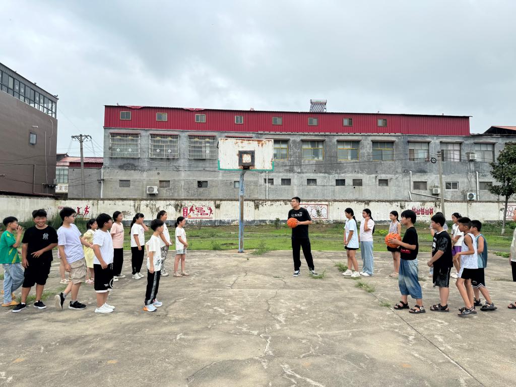 志愿服务队成员、来自文艺体育部的刘亚伟老师现场为小朋友们上了一堂篮球体育课,现场讲解了篮球比赛的规则和基础动作规范,带领小朋友们进行热身,并组织进行投篮姿势、单手运球、胯下运球、双手胸前传球、行进间传球、三步上篮等教学训练,课堂气氛活跃,受到了师生的欢迎和好评。