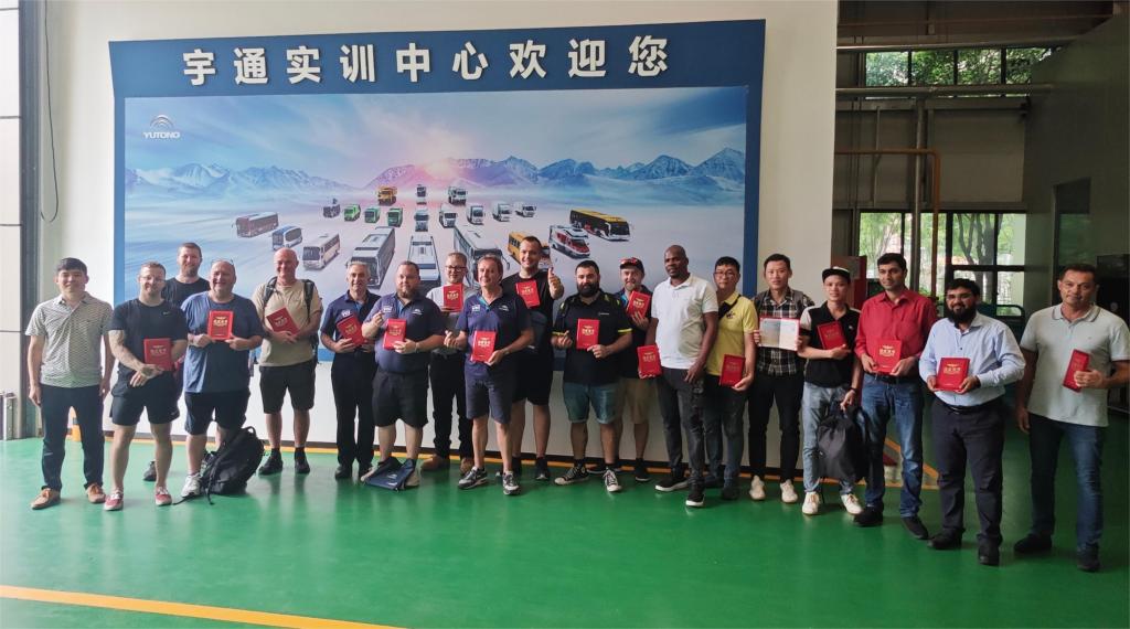 此次培训在郑州宇通研发中心举行,吸引了来自新加坡、新西兰、澳大利亚、哥伦比亚、巴基斯坦等国家的20多位海外服务人员参加。培训内容为新能源车辆驾驶、安全维保培训,三电系统、整车电器、电池系统部件及功能、客车高压系统静态调试等,涵盖新能源汽车售后服务最新技术和最新工艺。