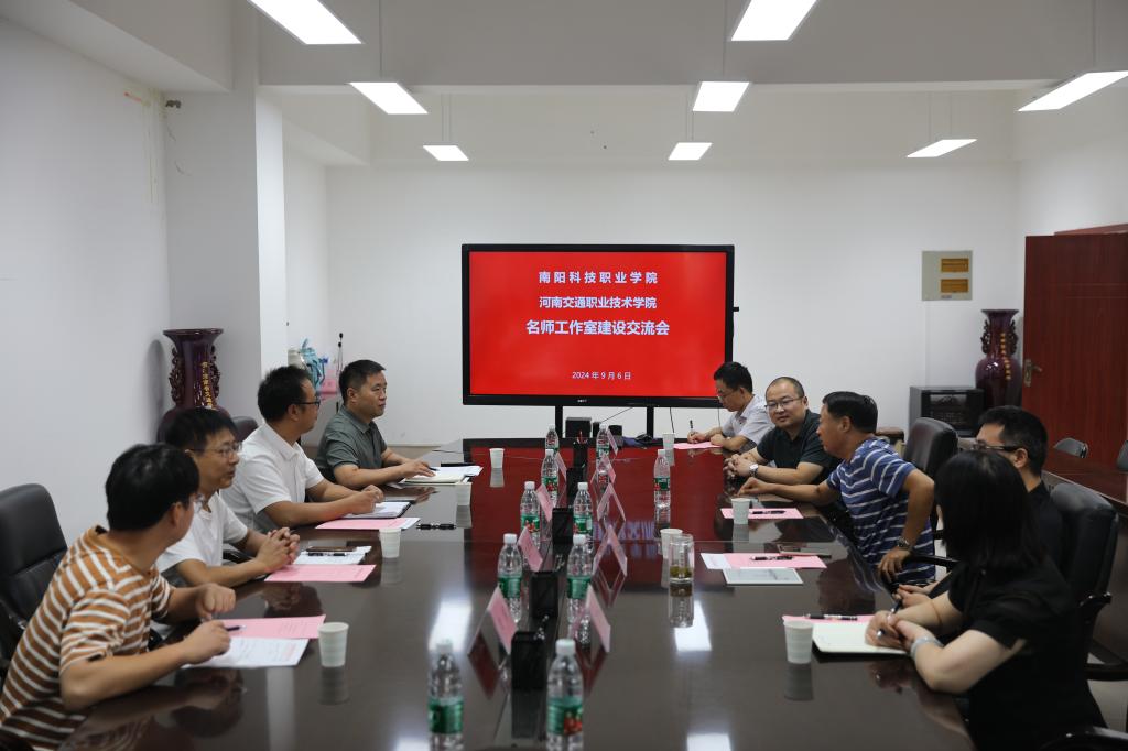 9月6日上午,南阳科技职业学院科研处处长王学军一行4人到访我校教学督导处,就教学质量评价、名师工作室建设等方面进行座谈交流,汽车学院副院长杨长征以及名师工作室成员代表参加会议。