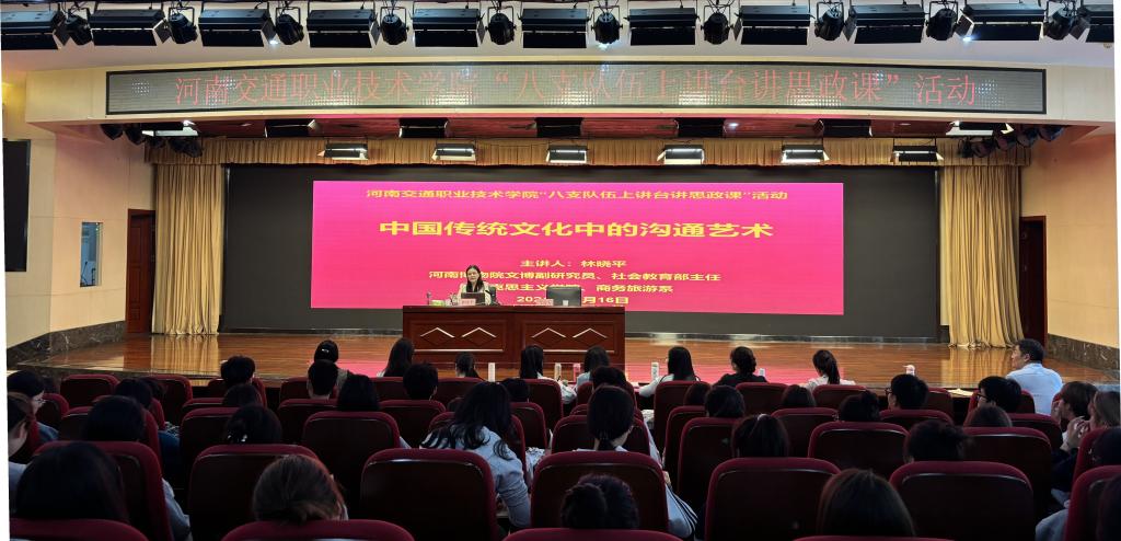 林晓平围绕“中国传统文化中的沟通艺术”这一主题,结合自己工作、生活的亲身经历,从中国传统文化中的沟通智慧、沟通的本质、沟通的重要性、沟通的技巧等方面,为在场师生作了生动讲授,提出中华优秀传统文化是中华文明的智慧结晶和精华所在,广大青年作为文化传承发展的主力军,新时代新征程,必须坚定文化自信,自觉担负起新的文化使命,在铸就中华文化新辉煌中谱写人生新华章。