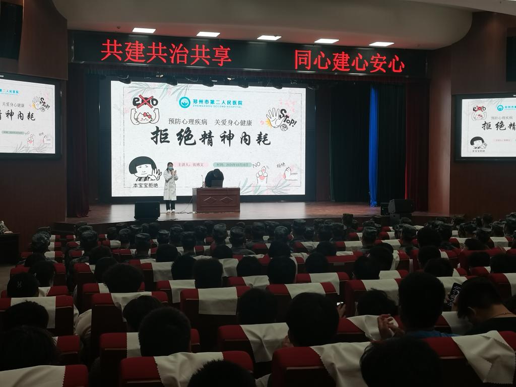 10月16日,学校在航海路校区艺术中心报告厅成功举办了一场生动的心理健康科普知识讲座。此次讲座特邀郑州市第二人民医院心理科专家张博文主讲,吸引了约120名士官生和200名普通生,共计300余人现场聆听报告。
