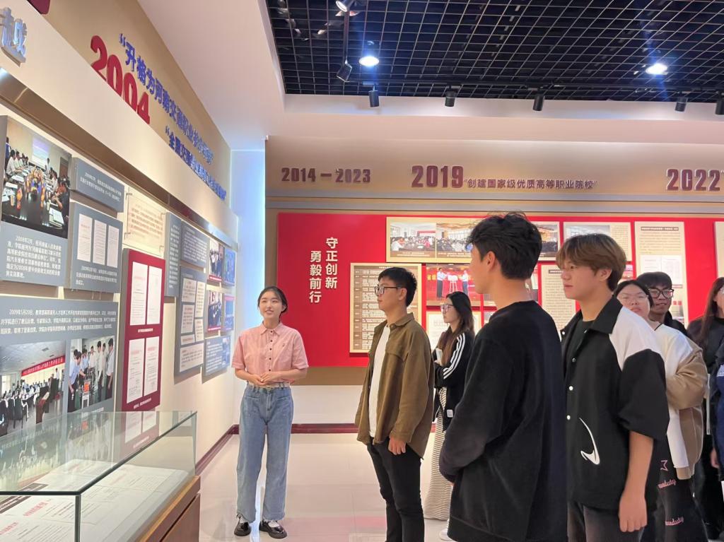 活动中,同学们首先在辅导员引导下进入校史馆,由校史馆讲解员带领同学们了解学校70年的光辉岁月和辉煌成果,展望美好未来。随后,同学们对图书馆进行了参观,了解图书借阅规则和馆藏布局。