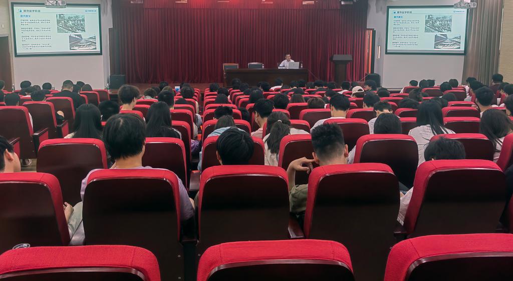 邰文凯结合十多年海外工作实践经验,围绕全球绿色建造发展趋势,系统介绍了中铁七局海外工程采用的先进技术及优秀典型案例,阐述了低碳材料、智慧施工、BIM技术、废弃物资源化利用等新技术在海外工程中的应用,并分享了坦桑尼亚跨海大桥、刚果(金)利科路等国际标杆项目的实践经验。互动环节,他就师生们提出的“数字化与可持续协同发展”“海外工程建设岗位需求和必备技能”等热点给予了专业解答。