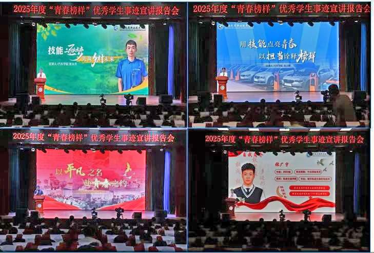 宣讲会上,学校轨道交通学院和汽车学院的四名优秀学生代表从技能竞赛、平凡青春、乡村振兴、院系奉献四个方面分享了自身的成长故事和奋斗历程,为在校学生树立了学习的榜样,激发了广大青年学子奋发向上的动力。