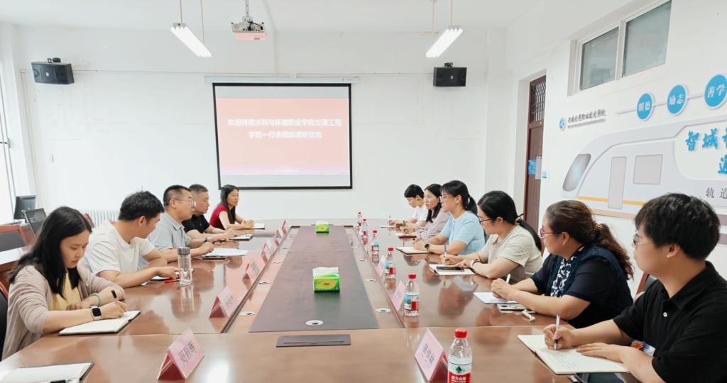 6月6日,河南水利与环境职业学院交通工程学院副院长芈书贞一行6人到学校轨道交通学院调研交流,轨道交通学院副院长闫洪林及相关负责人、骨干教师参会。