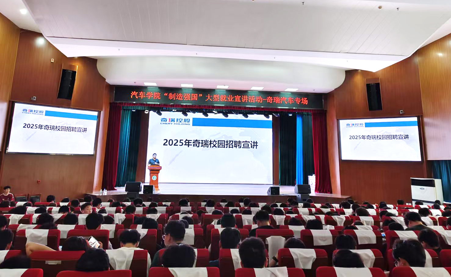 6月11日下午,汽车学院在航海路校区举办“制造强国”大型就业宣讲活动。奇瑞汽车股份有限公司和浙江长江汽车电子有限公司两家优质企业进校园开展宣讲,为学院学生提供精准就业服务。汽车学院三百余名相关专业学生参加活动。