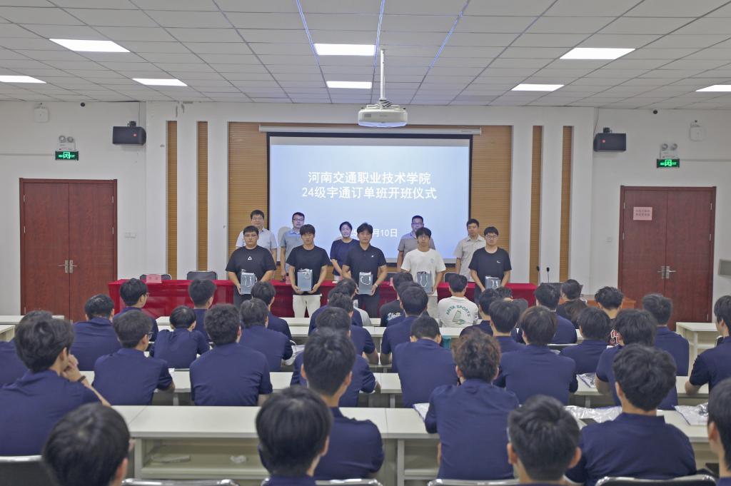 9月10日上午,汽车学院与郑州宇通集团有限公司在航海路校区联合举行2024级宇通现场工程师班开班仪式。校企双方相关负责人出席仪式,宇通项目教师团队与65名宇通现场工程师班学生共同参加。