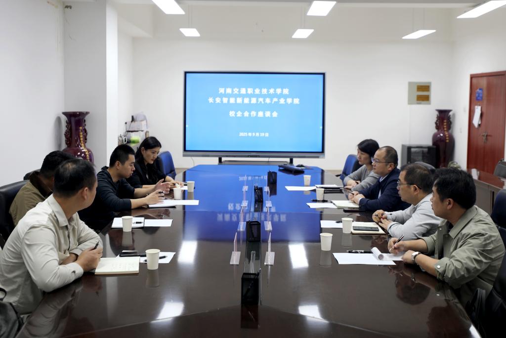 9月19日,重庆长安汽车股份有限公司子公司——重庆安驿汽车技术服务有限公司(简称“长安安驿”)校企合作区域总监何晨一行四人到访学校汽车学院,就深化校企协同育人、拓展合作领域等事宜开展交流座谈。汽车学院副院长杨长征及相关专业负责人出席会议。
