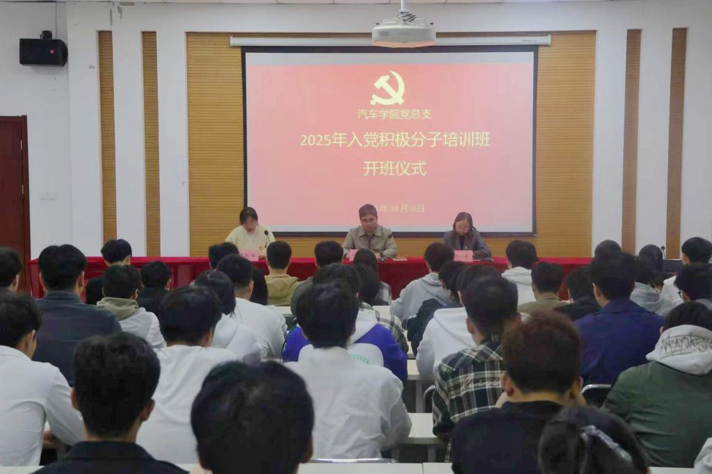 10月16日下午,汽车学院党总支在航海路校区举行2025年入党积极分子业余党校培训班开班仪式。汽车学院党总支书记轩照振、汽车学院团总支相关负责人及班主任、辅导员代表出席仪式,学院91名入党积极分子学员现场参加。