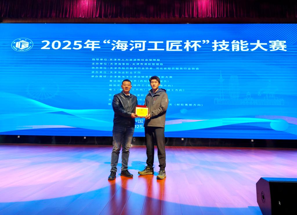 11月24日—26日,2025年“海河工匠杯”技能大赛——京津冀海洋交通运输类职业技能大赛钳工(船舶钳工)赛项在天津海运职业学院成功举办,学校航运海事系学生孙浩轩在系部教师张镇欢、李庆伟的精心指导下,代表学校参赛,历经多轮激烈角逐,最终荣获优秀奖。