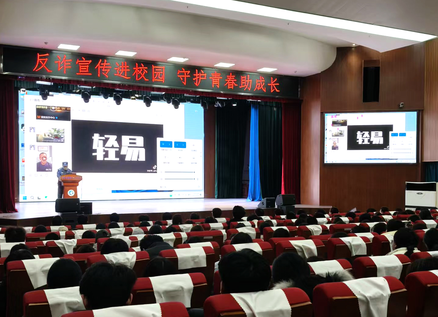 12月3日,商务旅游系联合航海路校区综合办在航海路校区艺术中心举办反诈主题宣传教育活动。本次活动面向全系大一新生,特邀辖区派出所民警张军担任主讲嘉宾。